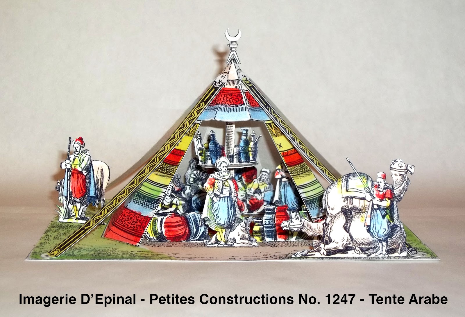 I really liked this Epinal Papercraft because of the amount of little items that went into it... Look closely, and you can even see the little people sitting IN the tent, along with their belongings and their drinks!